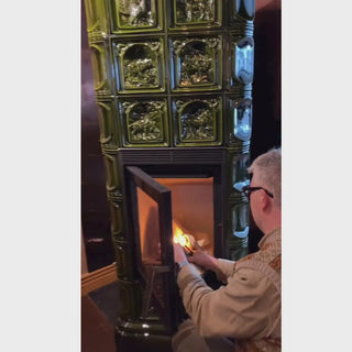 Kaledonie Exklusive XL i grön kakel skapar en varm och inbjudande atmosfär i ditt hem, där tidlös elegans möter modern prestanda. Med en imponerande höjd på 184,8 cm blir XL-modellen ett stilfullt blickfång som fyller större rum med både värme och karaktär.