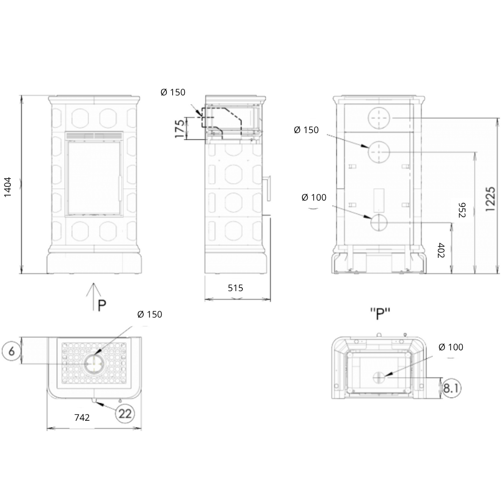 Kaledonie Exklusive finns i tre storlekar – S, M och XL – och i tre eleganta färger: vit, grön och brun, vilket gör det enkelt att hitta en kakelugn som passar både rummet och din personliga stil.