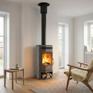 Kaminen kan kopplas till extern luft, vilket gör den extra lämplig i nyare hus och bidrar till en jämn och stabil förbränning. En enkel, snygg och funktionell kamin för dig som vill ha både värme och trygg användning – utan krångel.