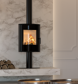 Ein Clean-Glass-System hält das Glas rußfrei und reduziert so den Reinigungsaufwand. Der Ofen ist außerdem mit einem geräumigen Aschekasten ausgestattet. Der Schornstein kann wahlweise hinter oder auf dem Ofen installiert werden.