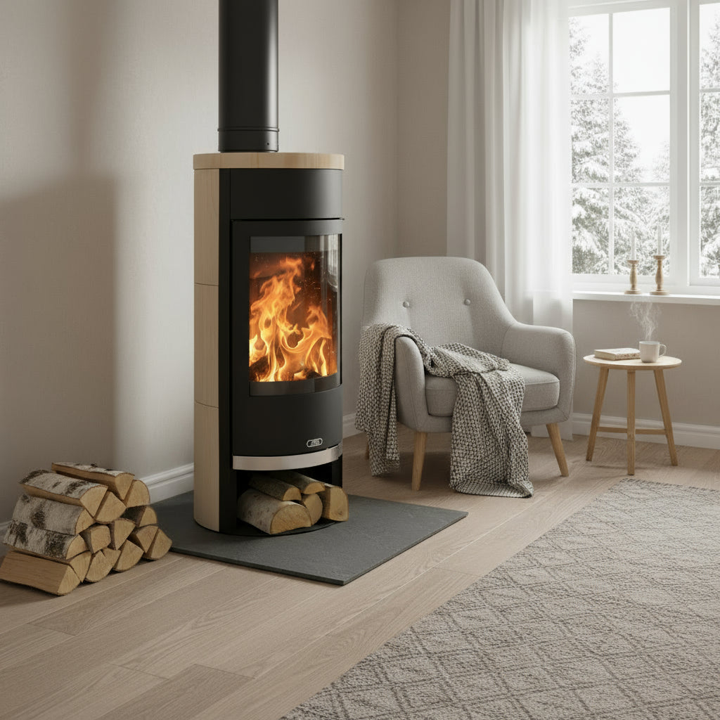Med sin tidlösa design och naturliga sandsten förenar Vigo både funktion, kvalitet och estetik – en braskamin som höjer känslan i varje hem