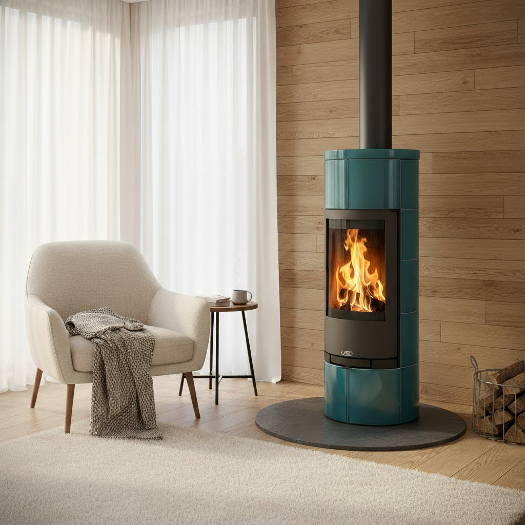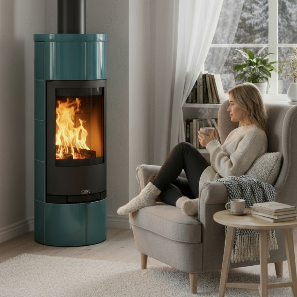 Bakom den klassiska designen döljer sig en effektiv förbränningsteknik som levererar behaglig värme med låg vedförbrukning och hög verkningsgrad. Tack vare kaklets värmelagrande egenskaper sprids värmen mjukt och behagligt – även långt efter att elden slocknat.