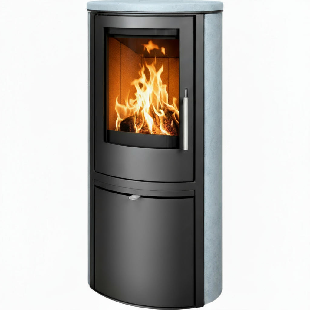 Täljstenskamin RENO kombinerar modern design med naturlig värmelagring. Täljstenen lagrar värmen under eldningen och ger en behaglig eftervärme när lågorna har slocknat. Med en effekt på 2,5–7 kW och en verkningsgrad på upp till 81 % är detta en effektiv och miljövänlig kamin för bostäder på 50–140 m³. RENO är det perfekta valet för dig som vill ha pålitlig värme, låg förbrukning och tidlös design i ett.