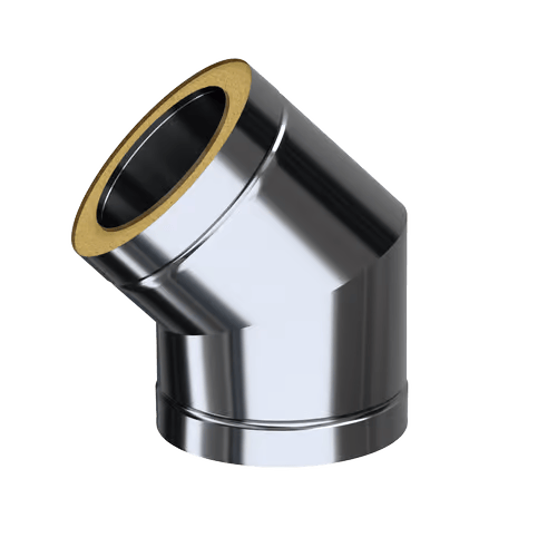 Ein Bestandteil des isolierten ADAM DW-Schornsteins. Der Winkel bildet einen Bogen von 45°. Er dient zur Änderung des Schornsteinverlaufs.