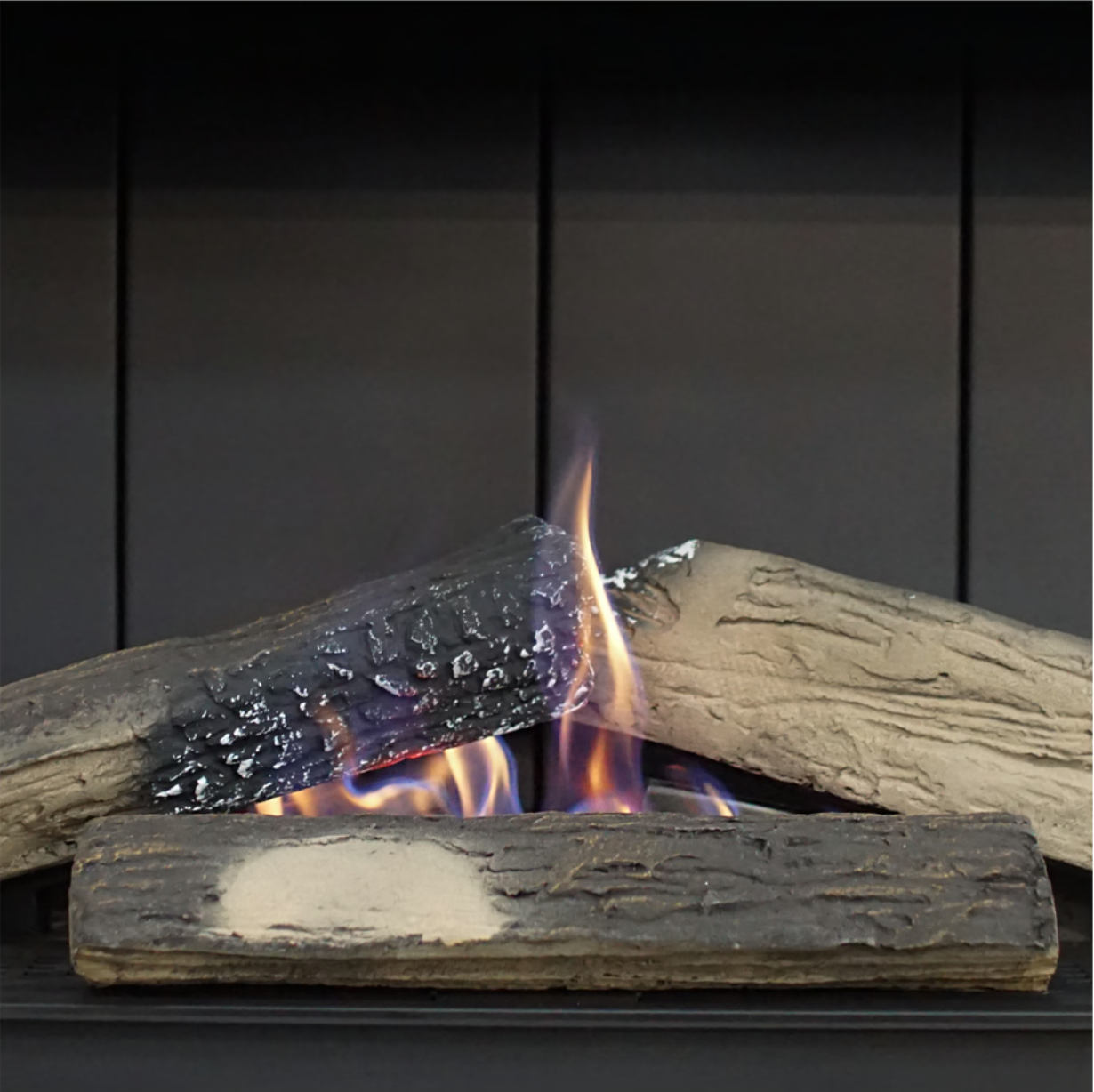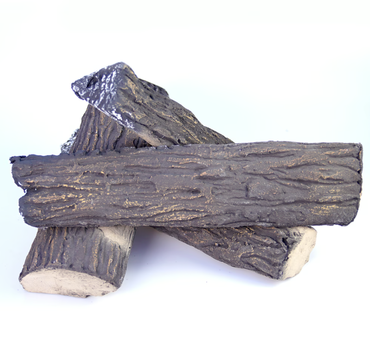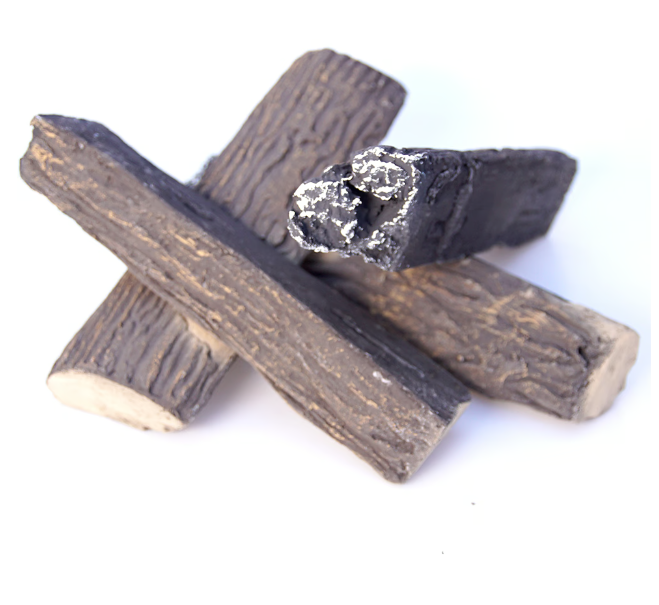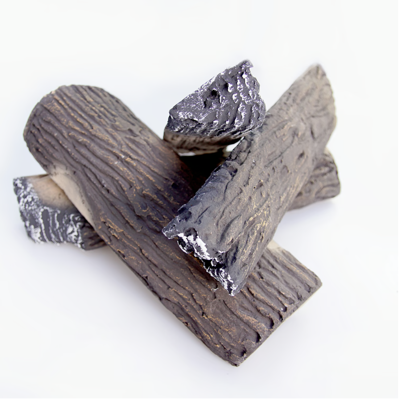 Dekorativa keramiska träbitar som imiterar gran är en utmärkt prydnad för varje gaseldad spis. Under användning är de motståndskraftiga mot höga temperaturer.