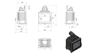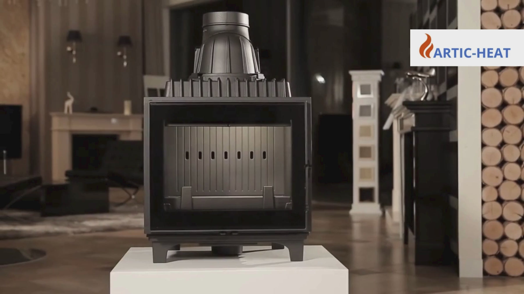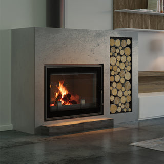 Gjutjärns insatskamin erbjuder hög uppvärmningseffektivitet med sina räfflade sidor som ökar värmeytan.
